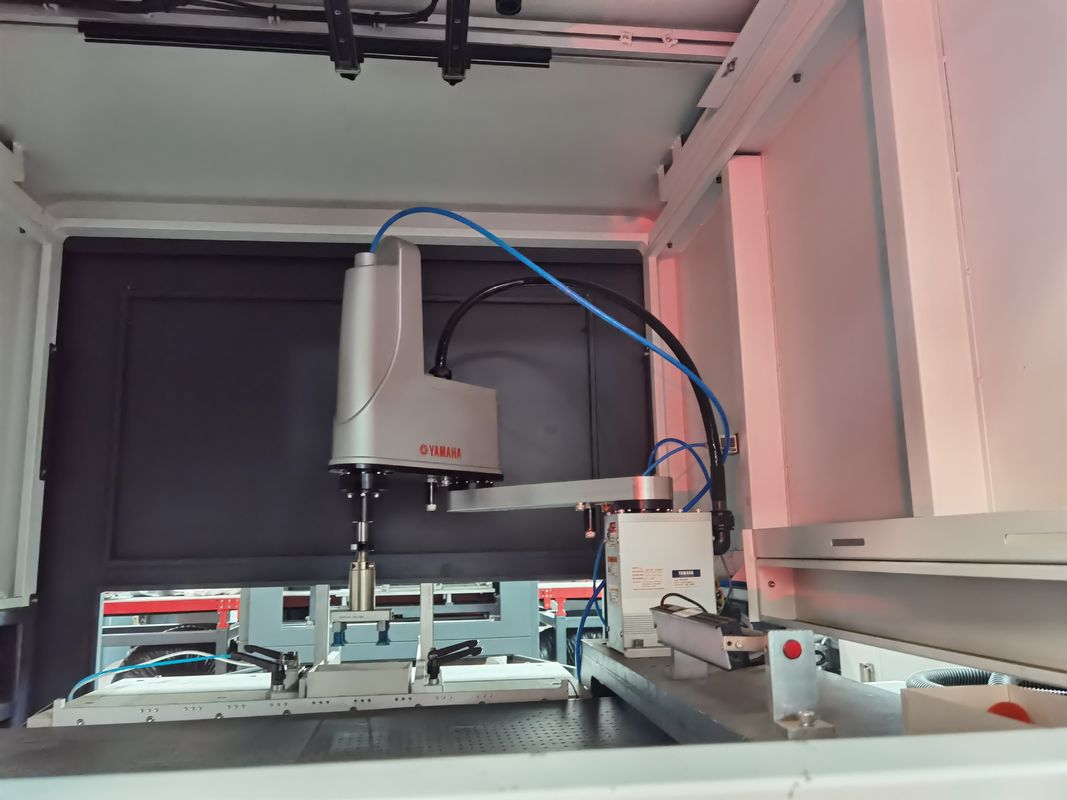 1, Sử dụng hai camera công nghiệp với 5 triệu điểm ảnh và cánh tay robot YAMAHA để định vị, độ chính xác định vị cao (± 0,1mm)