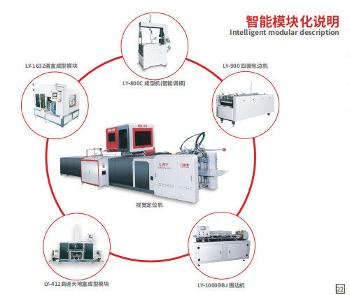 A series of LY-485 products, The parts of Feida feeding, gluing and conveyor belt use independent servo drive. The positioning part adopts YAMAHA robot arm, and camera to visually position the inner box, which can realize high accuracy in the rigid box, bookcase , drawer box, irregular shape boxes. It is suitable for a variety of high-quality gift box which need gluing ,like phone box, cosmetic box, Jewelry box, watch box, wine box, cigarette box, etc.